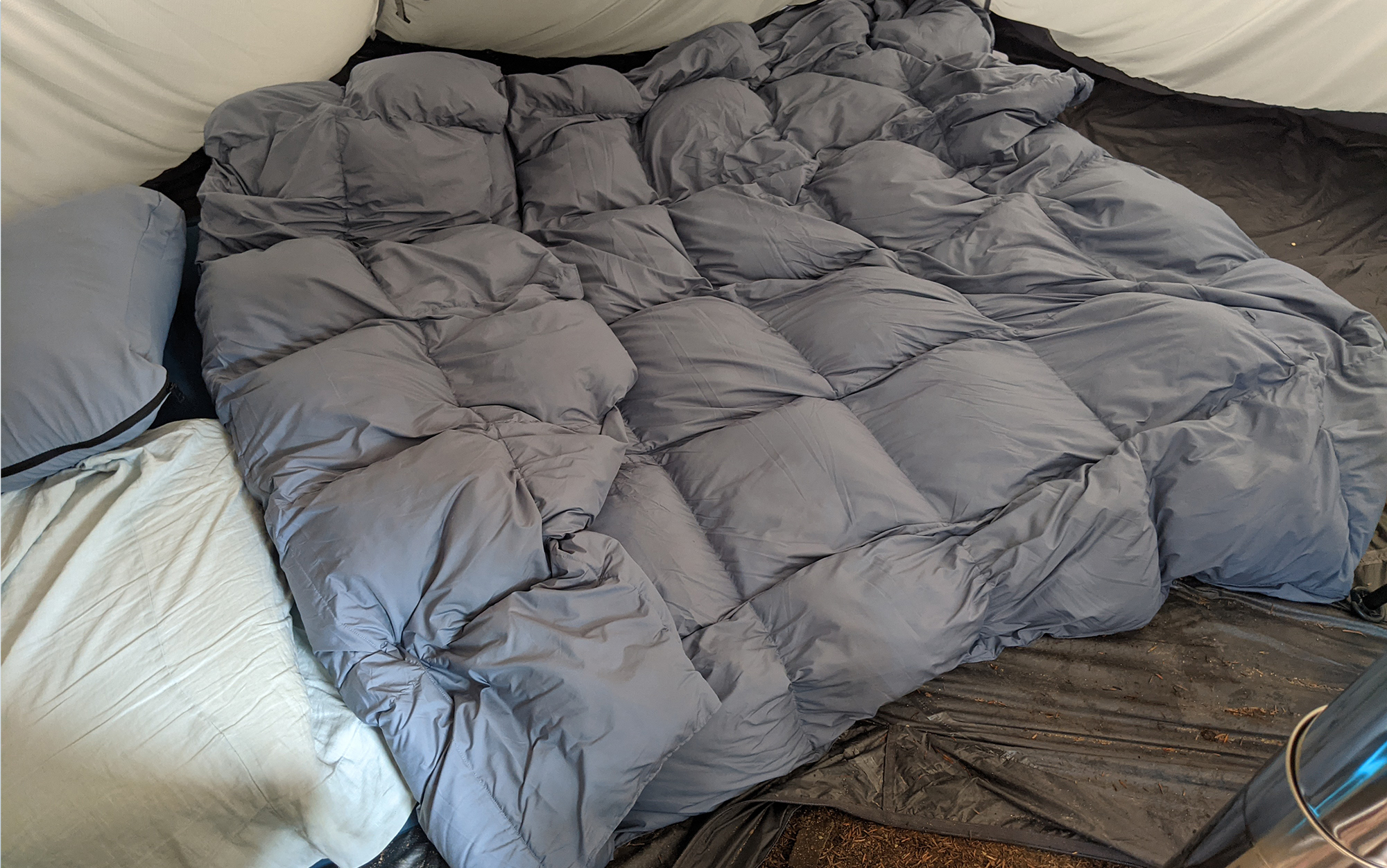 This mattress makes me excited to get in the tent at night and I always sleep like a baby. The 8.1 R value ensures you’re toasty warm off the cold ground. You can pump the MegaMat up to your desired firmness, though if you under fill it for a softer feel, you’ll notice the weight transference when your partner gets up a bit more. When it’s fully firm, I barely notice.