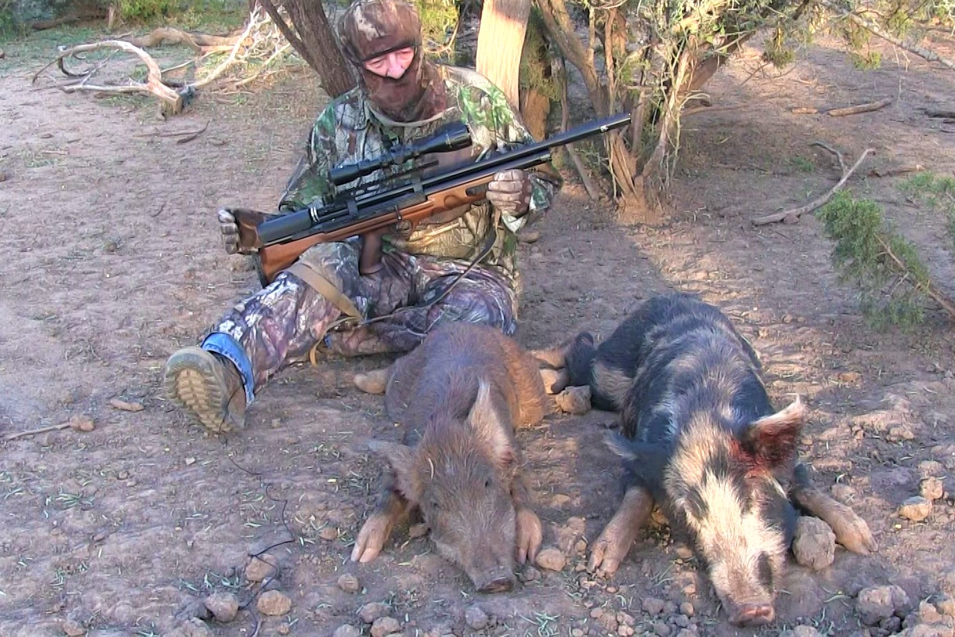 Without taking the rifle off my shoulder, I cycled another pellet, and seeing the spotted pig was out for the count, I swung around and put a second pellet in the ear of a smaller pig that had stopped to look around as the rest moved away. My rabbit hunt turned into an ice chest full of tender pork, and the BullBoss performed flawlessly.