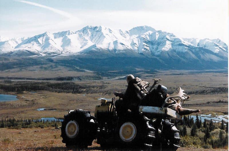 These hunters were using an Ardco Tractor for moose and caribou hunting in the 1980s and 90’s. Although it looks more like a monster four-wheeler than a tractor, it was another early low-pressure machine that could motor across the tundra with ease and even haul a whole moose in a single load.