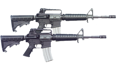 Active military, former military and civilians alike love this widely available version of the M-4. The Bushmaster AR-15 rifle shoots both 5.56mm and .223-caliber rounds. The price starts at $1,200 and goes on up, if you can find them. Thanks to a number of aluminum and synthetic parts, its empty weight is just 7.56 pounds. If the 30-round magazine doesn't get the job done, you've got bigger problems than a single rifle can handle. Pictured: M4 A2 (above) and M4 A3 (below) OL