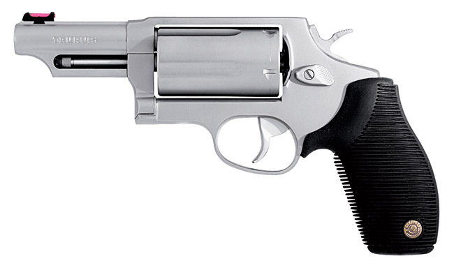 The Judge revolver shoots both .45 Long Colt loads and .410 shells. It's perfect for snake country loaded with .410s, and is devastating as a close-quarters self-defense handgun when loaded with either .45s or .410 shells. One limiting factor is that the longest shell it will carry is 2 ½ inches, but with the variety of loads on the market in this length, it's not a deal breaker. The Judge weighs 37 ounces and is 9½ inches long so it's not exactly concealed carry material, but it should find a home in your go-bag. It retails for $600. OL