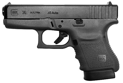 Some may consider this subcompact pistol a "Baby Glock," but can you really call anything firing a .45-caliber round "baby"? I think not. It is a slim pistol that leaves my pinky finger squeezing air on the grip, but it's great for concealed carry. It weighs a mere 27 ounces (with a full magazine of six rounds) thanks largely to its lightweight composite frame. It retails right around $500. OL