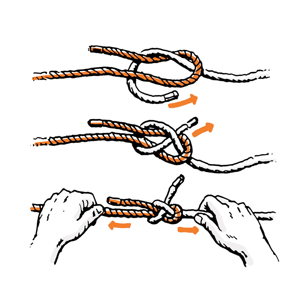 This knot is great for tying two ropes end-to-end, especially if they are different sizes. It’s strong, reliable, and easy to untie.