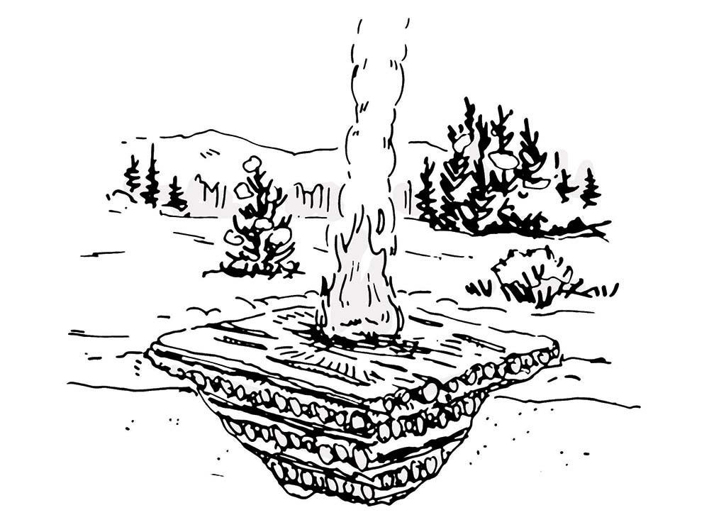Radiated heat from a fire will melt the snow it’s sitting on. Make a wooden raft to insulate the fire and keep it raised out of any melt water. This is sufficient for a one-off fire if you want to, say, boil water. If you need a long-term fire for a shelter site, more preparation is necessary. If you can, dig down to the ground. If the snow is so deep as to make this impractical, you’ll need to dig a pit at least 3 yards in diameter. Then dig the foundation 1 foot deep. Add a layer of sticks, followed by a compressed layer of snow 1 inch thick, a layer of sticks perpendicular to the first, a layer of snow, and so on. Stack this sandwich until you have at least six layers. Build your fire on that stack. Keep the fire small for better fuel efficiency. —C.A.