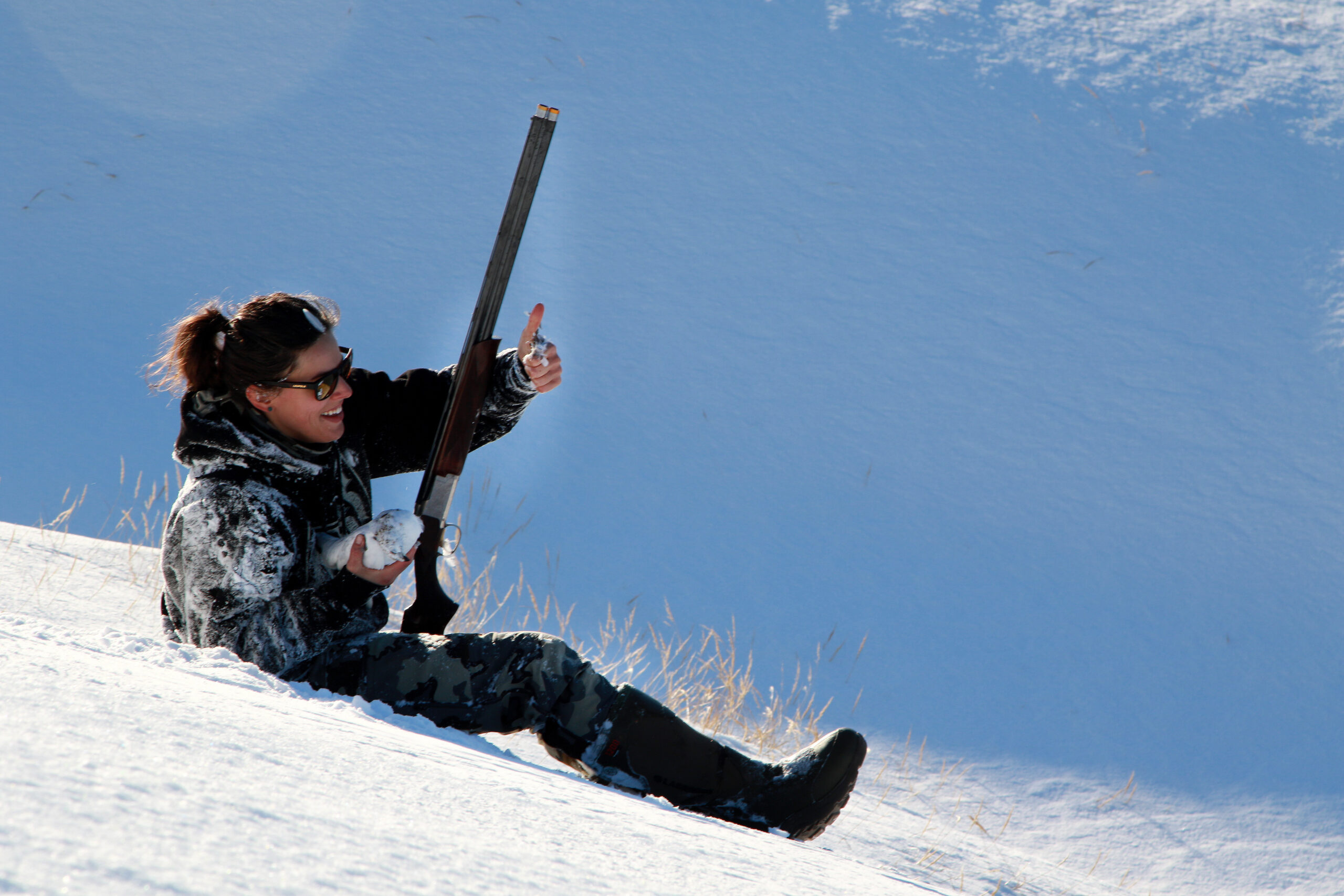 My buddy Kali Parmley has already hoofed it half a mile straight up, and now she’s running in knee-deep snow to reach the dead ptarmigan before a bald eagle does. After losing one hard-earned ptarm to an eagle, Kali knows she has to haul ass. By the time she gets ahold of the bird, she’s retching. That echoes too.