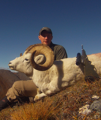 Schultz eventually got his sheep—a gorgeous ram with both horn tips broken off right at full curl. After a couple of blown opportunities, we found this one bedded beneath a boulder high on a ridge that looked like something out of a moonscape photo. A snow-white glacier loomed in the distance.