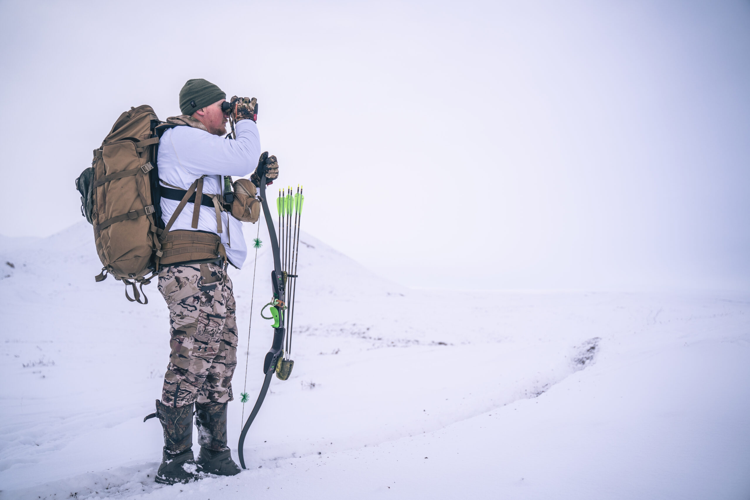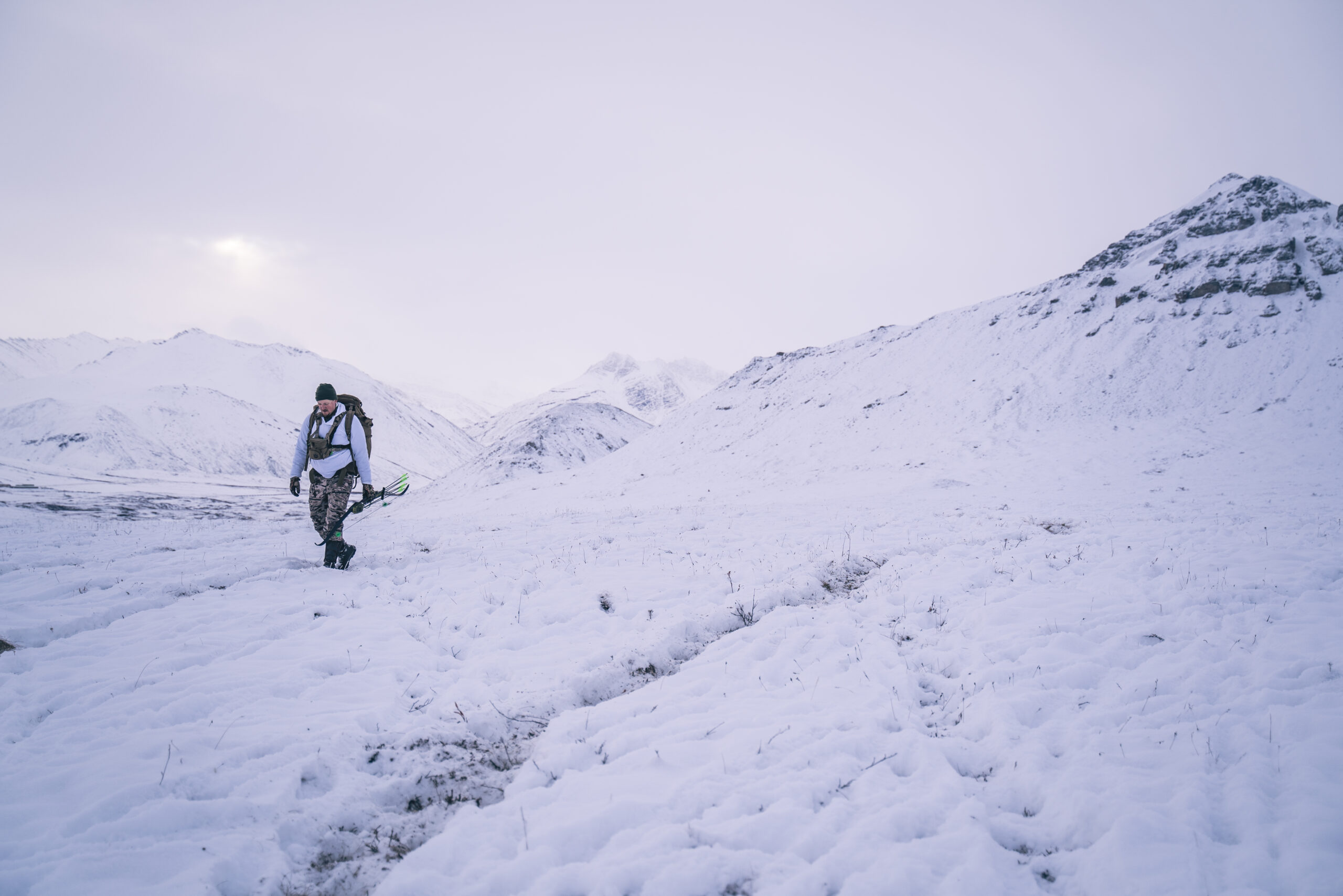 All we could do was look for another group of caribou to stalk. Luckily this shouldn’t be much of a problem, as thousands of caribou were migrating through this snowy stretch of rolling hills and wide valleys at the northern edge of the Brooks Range, within the largest bowhunting-only area on the continent.