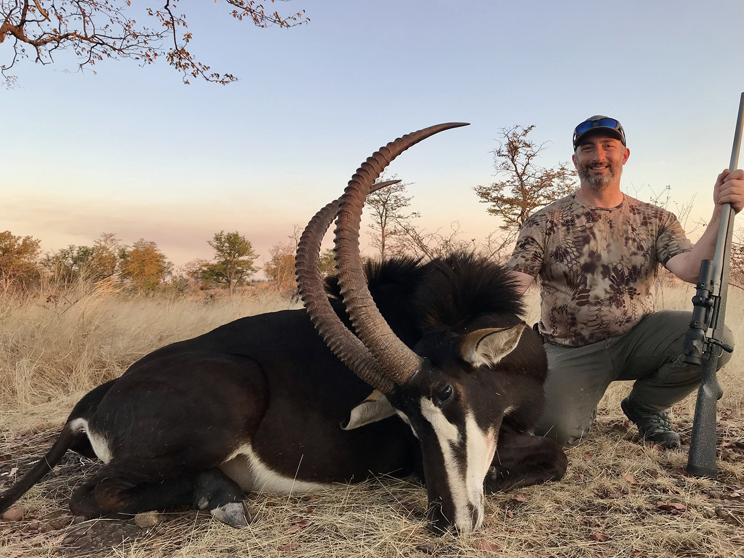 Ultimately, after putting in many miles on foot and in the truck, I got my sable and a kudu and zebra as well. All the shots were quick, as is often the case in Africa. Evolution has taught these animals not to stand in one place too long. Our return to camp one evening showed why. We were driving down a wooded stretch of road near a dry riverbed. Teak trees and mopani cast long shadows across the sandy two-track. On our left we spotted two juvenile male lions, heads fringed with budding manes, padding silently through the brush. We stopped, and they stopped and turned to look, curious as, well, cats. Then we heard a growl behind us. Forty feet away was their mother, belly to the ground. A flick of her tail and she was coming, impossibly fast when you witness it up close. Rob had his Glock in hand. Not exactly a charge stopper, but sitting in the cab of a truck, you don’t have many options. The lioness pulled up short, but that combination of strength, stealth, and speed was something to behold. A shiver ran down my back.