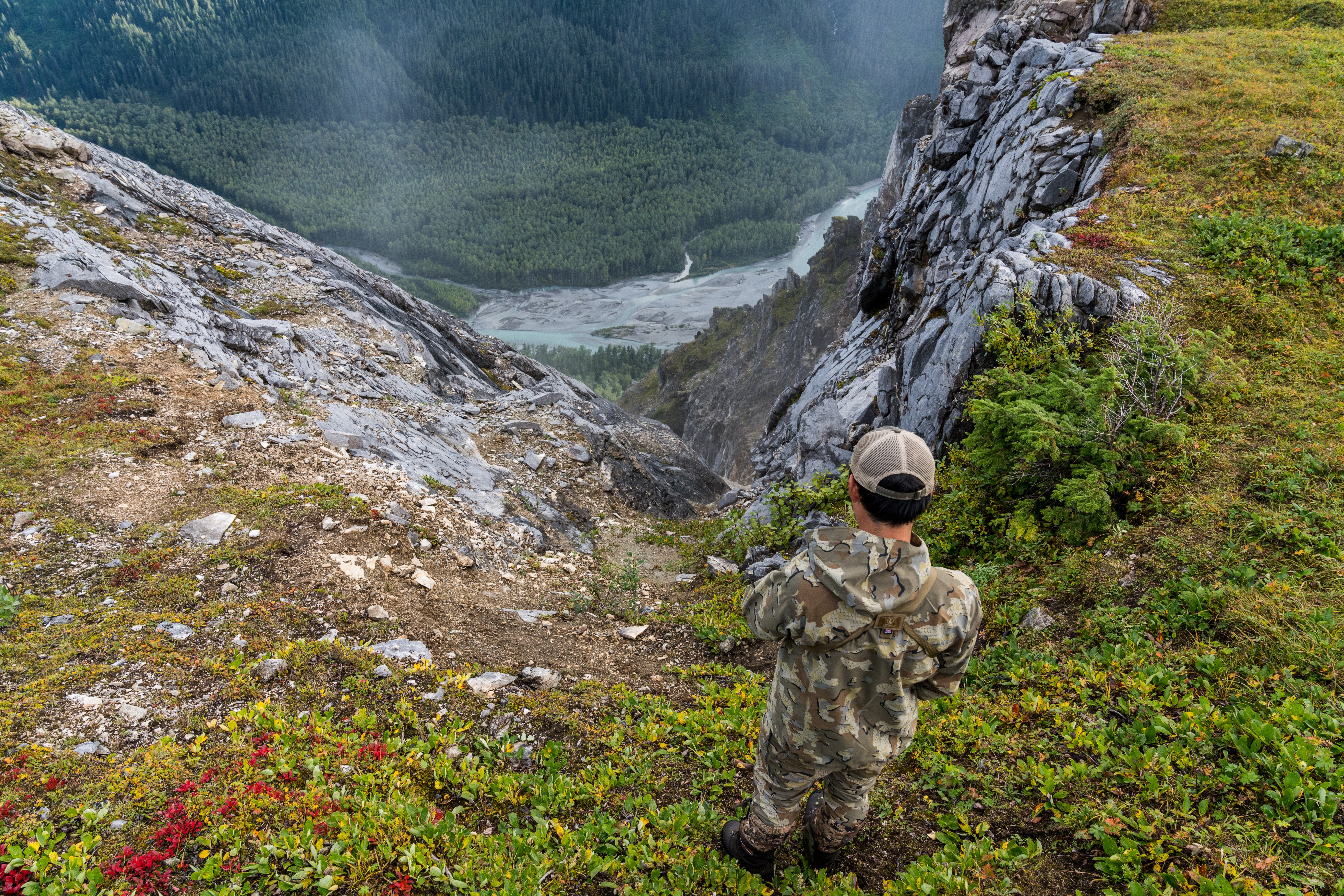 Here the alpine is protected by a fortress of old-growth timber, devil’s club, deadfalls, and alder. You fight brush all the way, and you keep climbing until it’s so steep, rocky, and high that the alder brush can no longer find a place to cling to. Then you start hunting.