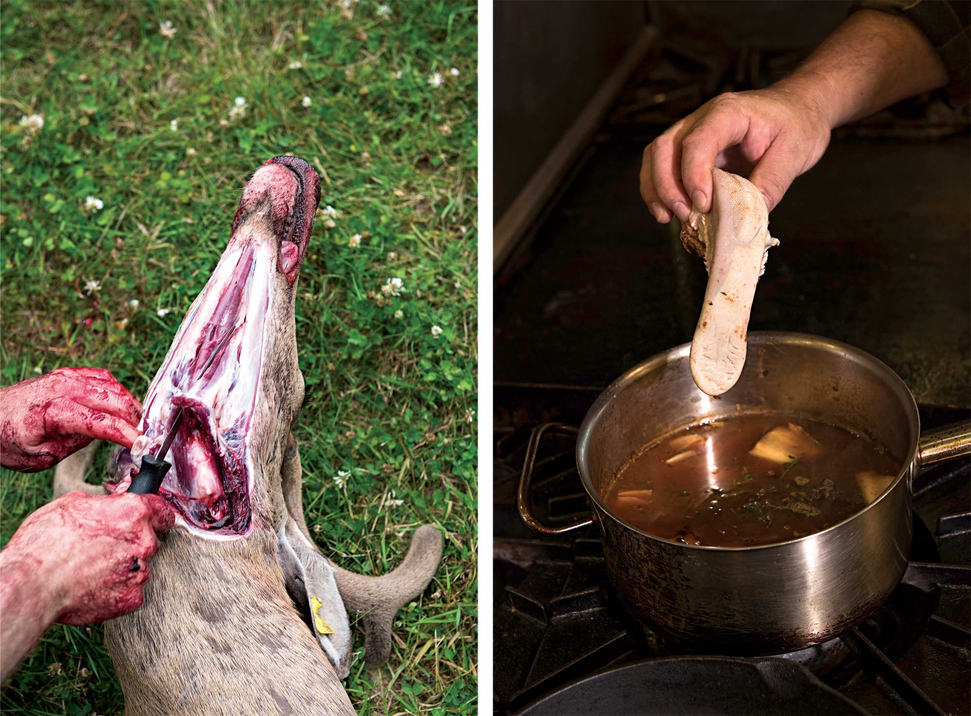 The key to this dish is properly extracting the tongue, which is a bigger piece of meat than you might expect. You need to remove the tongue shortly after the kill, before rigor mortis begins to set in.