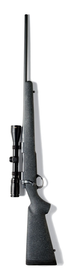 All that smart design wouldn’t count for much if the rifle didn’t handle and perform well. The excellent accuracy of the rifle–five-shot groups with Nosler’s Custom ammunition in 120-grain Ballistic Tip averaged 0.983 inches, with the smallest group measuring 0.658 inches–can be attributed in part to the quality of the hand-lapped barrel from Pac-Nor and the crisp adjustable trigger from Timney, which on my sample broke at just above 3 pounds.