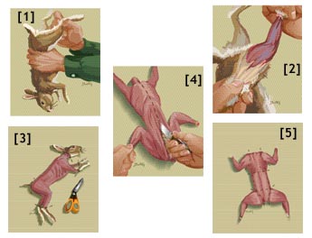 Use game shears to remove the rabbit’s feet and head.