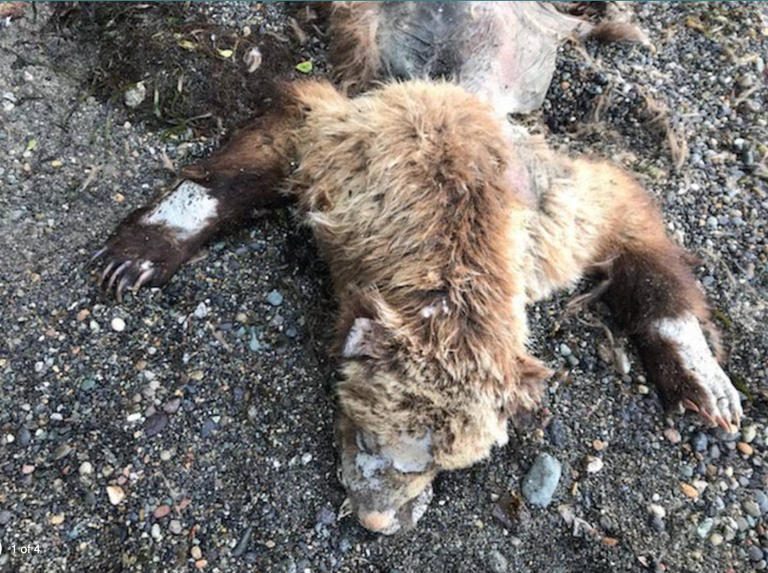 Dead Grizzly Mysteriously Washes Ashore on Washington State Beach