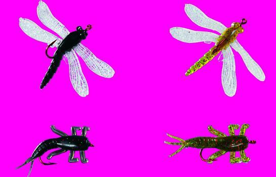 See ItDragonflies and Mayflies don’t last long when they touch the water’s surface and Strike King‘s soft-body imposters give panfish-tempting targets. Rigged on small light wire hooks and fished on ultralight outfits, these insect imitators are deadly around grass lines, lily pads, docks or anywhere panfish congregate.