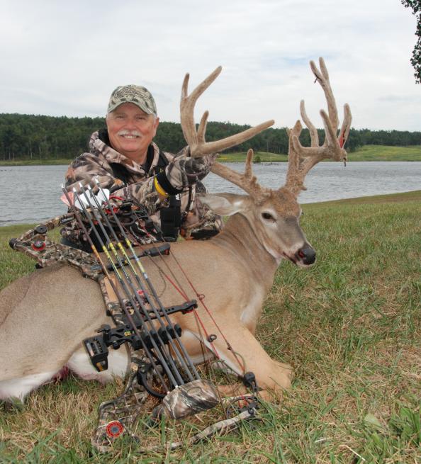 “When the buck slowly worked his way into bow range, I thought my heart was going to jump out of my chest. The extra-tall velvet-covered tines combined with the buck’s heavy mass really kicked my adrenalin into overdrive. I had to make myself stop looking at the antlers and take a deep breath to calm down. Finally, I was able to come to full draw and release an arrow…”