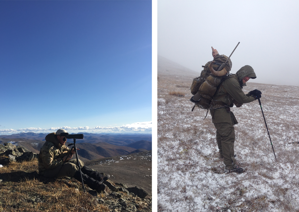 The sheep didn’t go far, but the caribou decided to bed down for the whole afternoon right where we needed to go to continue the stalk, so we aborted our mission. The following morning, the rams followed the same pattern and fed down below us again. As we were descending to a shooting position, the biggest ram decided he wanted to be back on the other side, feeding to where they had been the day before. The others followed, and we were pinned down in the open for several hours until we had a chance to get out of sight. Welcome to sheep hunting; even the best plans can get derailed, and you never know quite what causes it.
