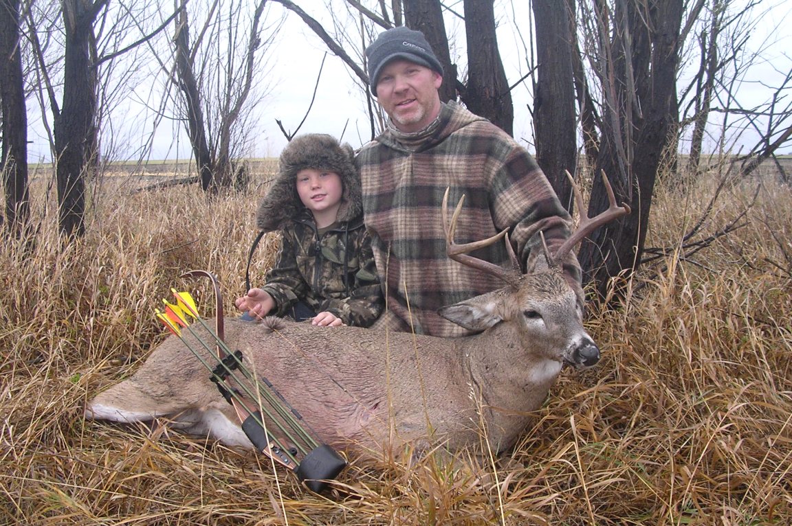 CH: My son Jacob is 11, and he shot an adult doe last Saturday night, opening evening. It was his first deer with a bow. He used an old, vintage Shakespeare recurve made in the ’60s; he likes that bow, it’s a 46 pounder at 28 inches, but it’s about 33 pounds at 23 inches, which is his draw length.
