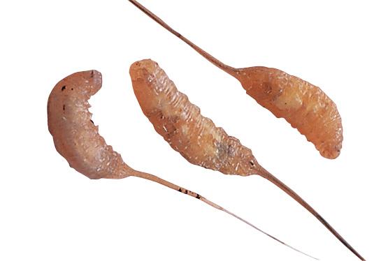 Seldom sold in bait shops, these tiny whitish grubs live inside the galls or swellings on the stems of goldenrod plants. You can collect the galls in fall through winter and remove the grubs as you need them. Fish them on a bare hook or with plastics and a 1⁄64 or 1⁄128 jighead.