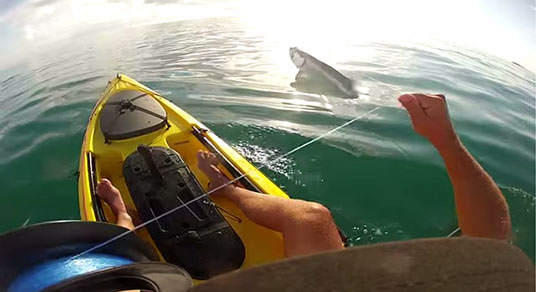 Instead, he uses a hand line on a spool–or yoyo– to land a huge tarpon. After towing the fisherman’s kayak around, the tarpon was landed and safely released.