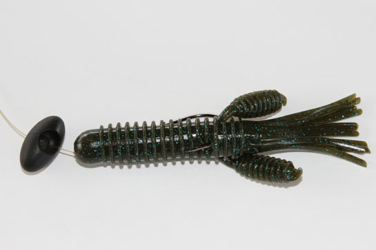 A small prop with a wire coil that screws into the end of most any soft plastic. Two benefits here: First, adding a small prop to a subsurface bait taps into the popular spy baiting technique of the hard bait world.