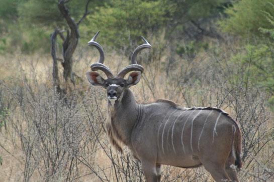 If you want a 60-inch kudu this is your best bet. Namibia has lots of kudu, but these striking antelope are elusive, shy, and difficult to hunt. If you spend much time pursuing them you’ll become familiar with their loud warning “bark” that indicates they’ve seen you before you’ve seen them. Big kudu are found throughout the country, but the Erongo Hills in the central portion of Namibia is a good place to start your search for the “gray ghost.”