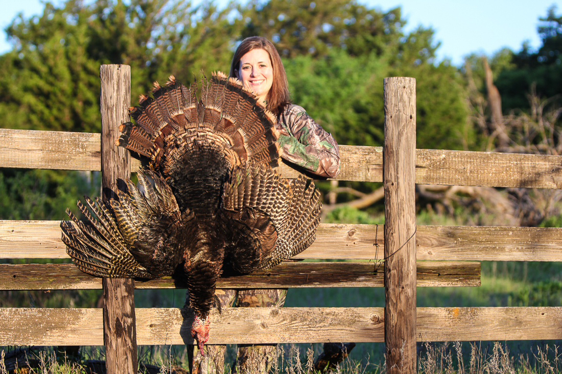 Beck pulled the trigger on the strutting Rio—and missed. It flapped over the blind and landed behind them, still in range. With some coaching from Peck, Beck got on him again and fired a second time. This shot connected, and she had her turkey before the sun was up.