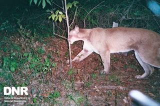 In the most recent case, a trail camera recorded multiple images of a single mountain lion on May 1. In late 2009, DNR biologists investigated and confirmed the presence of a mountain lion based on a photo taken by a Clay County deer hunter from his treestand.