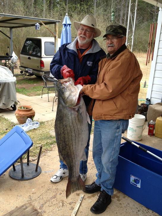 The previous Alabama record holder weighed 55 pounds and was caught in 1959. The current International Game Fish Association all-tackle world record for landlocked striped bass is a 67-pound, 8-ounce fish caught May 7, 1992 in Los Banos, Calif. by Hank Ferguson.