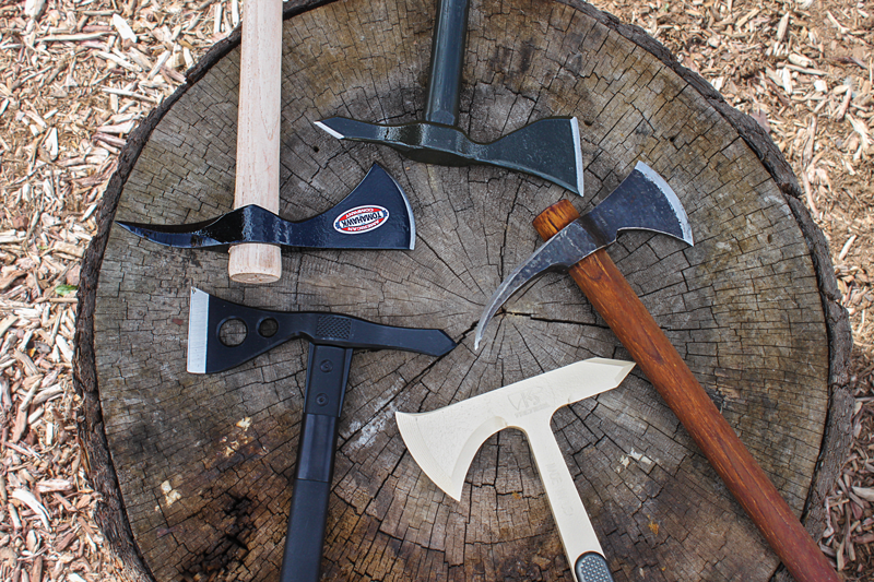 A tomahawk has a narrower blade and a spike at the rear of the head that make it more suitable for battle and throwing. They also have a thinner blade stock than axes and hatchets, which allows them to have deeper penetration. While the best camping axes are designed for chopping and splitting, a tomahawk’s geometry is not optimized for those tasks. Tomahawks are also lighter and generally have thinner handles. Traditional tomahawks also have a floating head which is easily removable and not wedged onto the handle like axes or hatchets.