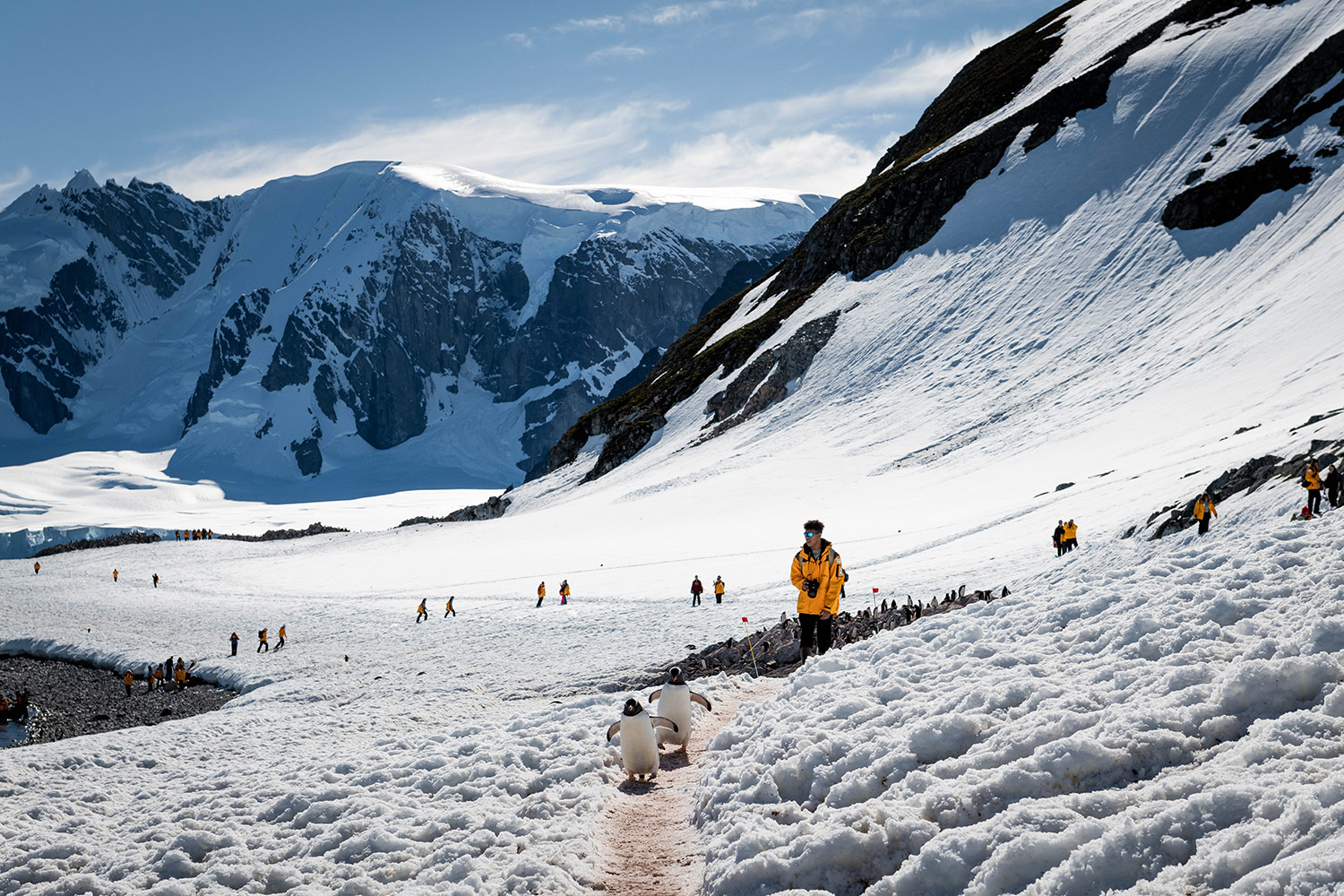 Tourists walk along penguin trails. Gunilla Lindh / Quark Expeditions