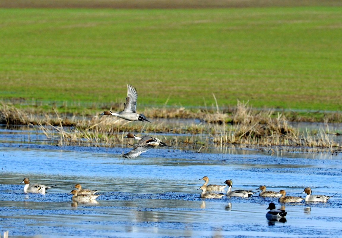 These water releases, however, rely on complicated agreements between the Bureau of Reclamation, which manages the dams on the upper Klamath, and other water users. This includes Native tribes, farmers, and irrigators. The Bureau of Reclamation must also consider the health of endangered Chinook salmon and the other fish and wildlife species that inhabit the greater Klamath River Basin. And because of all the competing demands for Klamath River water, the Lower Klamath Refuge Complex doesn’t always get enough water when ducks and other migratory birds need it most.