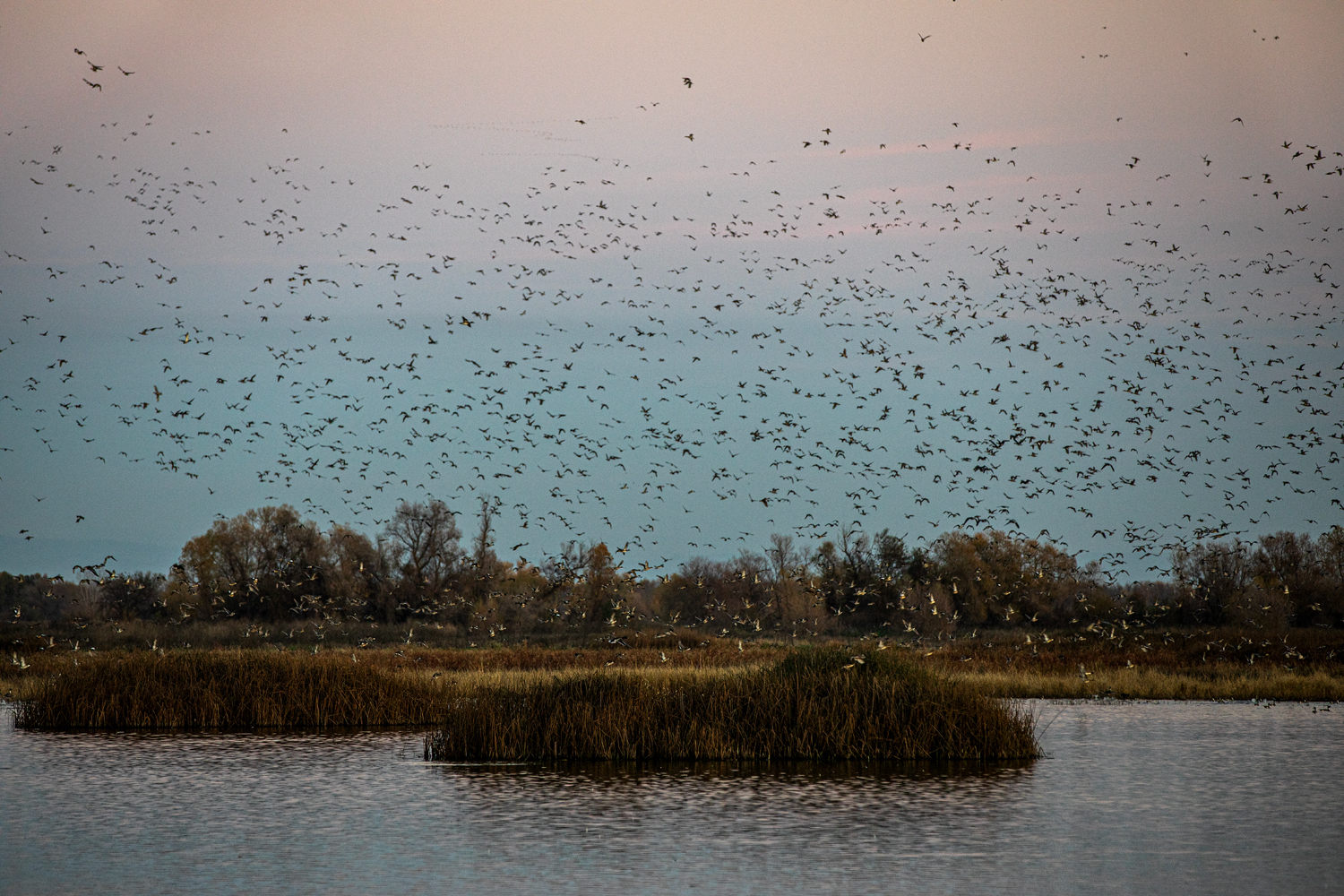 About 50 miles north of that public refuge in Sacramento, pintails fly over our private-land blind, their thin, narrow tail feathers silhouetted in the gray light of early morning. But as far as hunting experiences go, we’re in a different universe from those hunters waiting in the parking lot.