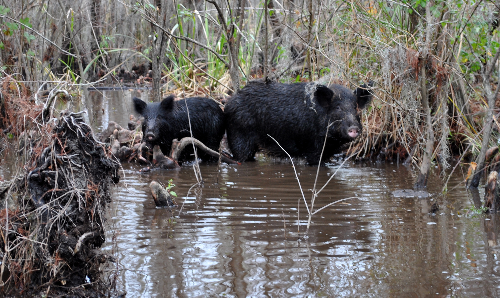 Hogs are incredibly difficult to eradicate because they are intelligent, they eat a wide range of food sources, and sows have approximately two litters of three to eight pigs each year.