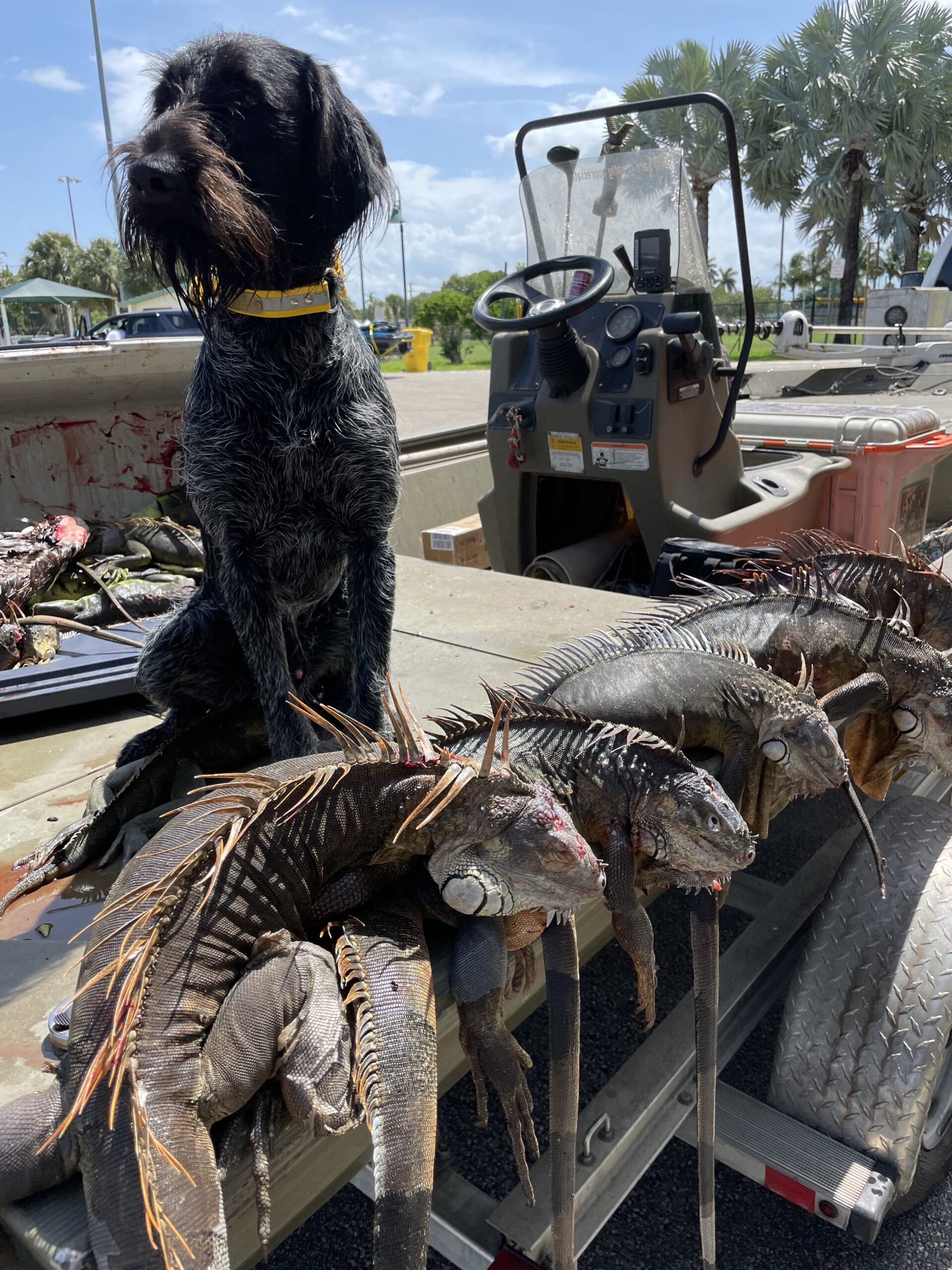 Florida lists iguanas as an invasive species that can be hunted year-round with no limit. And that’s where iguana hunter Mike Kimmel and his Drahthaar, Otto, come to the rescue.