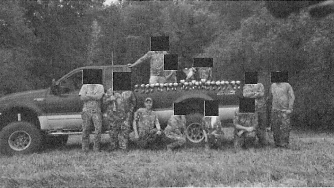 A week later Burlett texted Young, the taxidermist from Maryland, to inform him that whether Young wanted to get a Virginia license or not was up to him, but that he was “almost a mile off the road,” that Burlett had “been doing this for 16 year[s],” that he “lock[s] the gate to the farm so no one can get in,” and that it’s “a pretty safe location.” (This detail appears to contradict Burlett’s interview with officers, during which he said Young didn’t know the pond was baited.) On Oct. 7, the group killed their first batch of birds and posed for the picture that would ultimately lead to their conviction. A woman, most likely Burlett’s wife according to sources, and children were also in the photo.