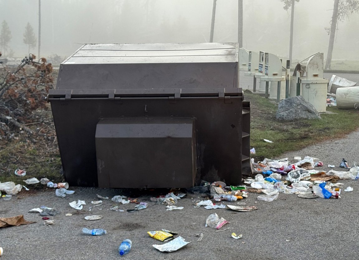 “In addition to developing a strategy to flip over 800-pound dumpsters,” officials wrote in the press release, “the bear also uprooted smaller bear-resistant trash cans from their concrete bases to gain access to human food and garbage.”