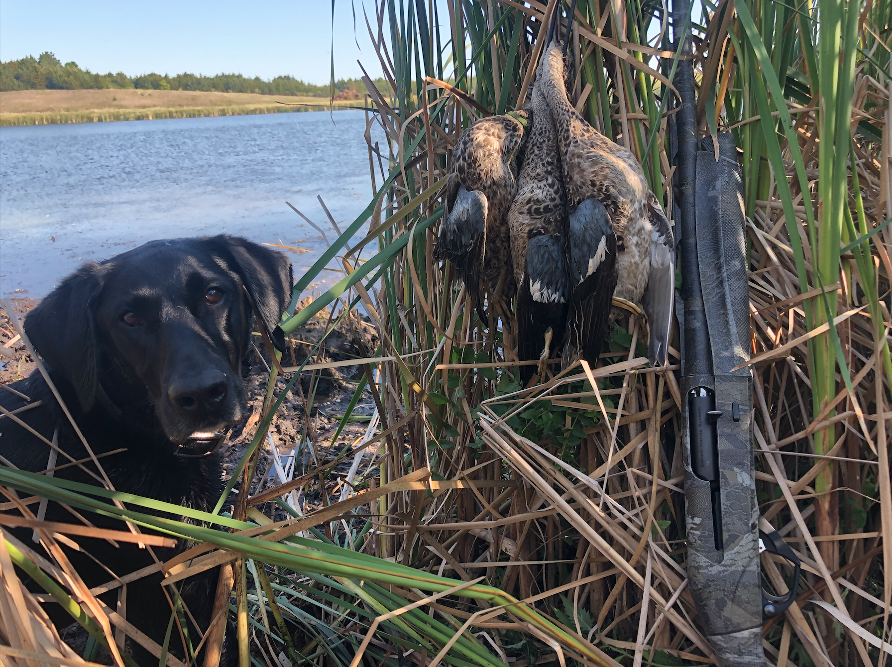 But his buddy walked his Lab across the creek and sent the dog into the cane. They returned with all three teal.