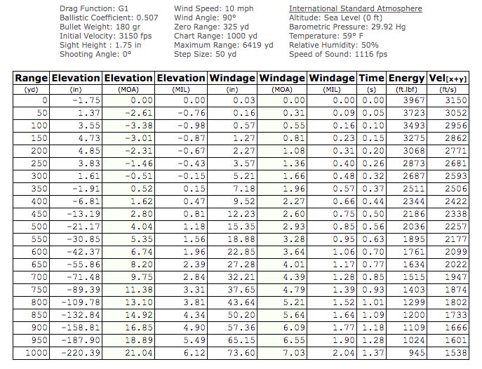 Zero a 180-gr. Accubond 4 inches high at 100 yards and it will peak just under 5 inches high at 150 yards and not drop 5 inches below point-of-aim until 320 yards. That should take care of the majority of an elk hunter’s responsible shot opportunities with no worries about hold-over.