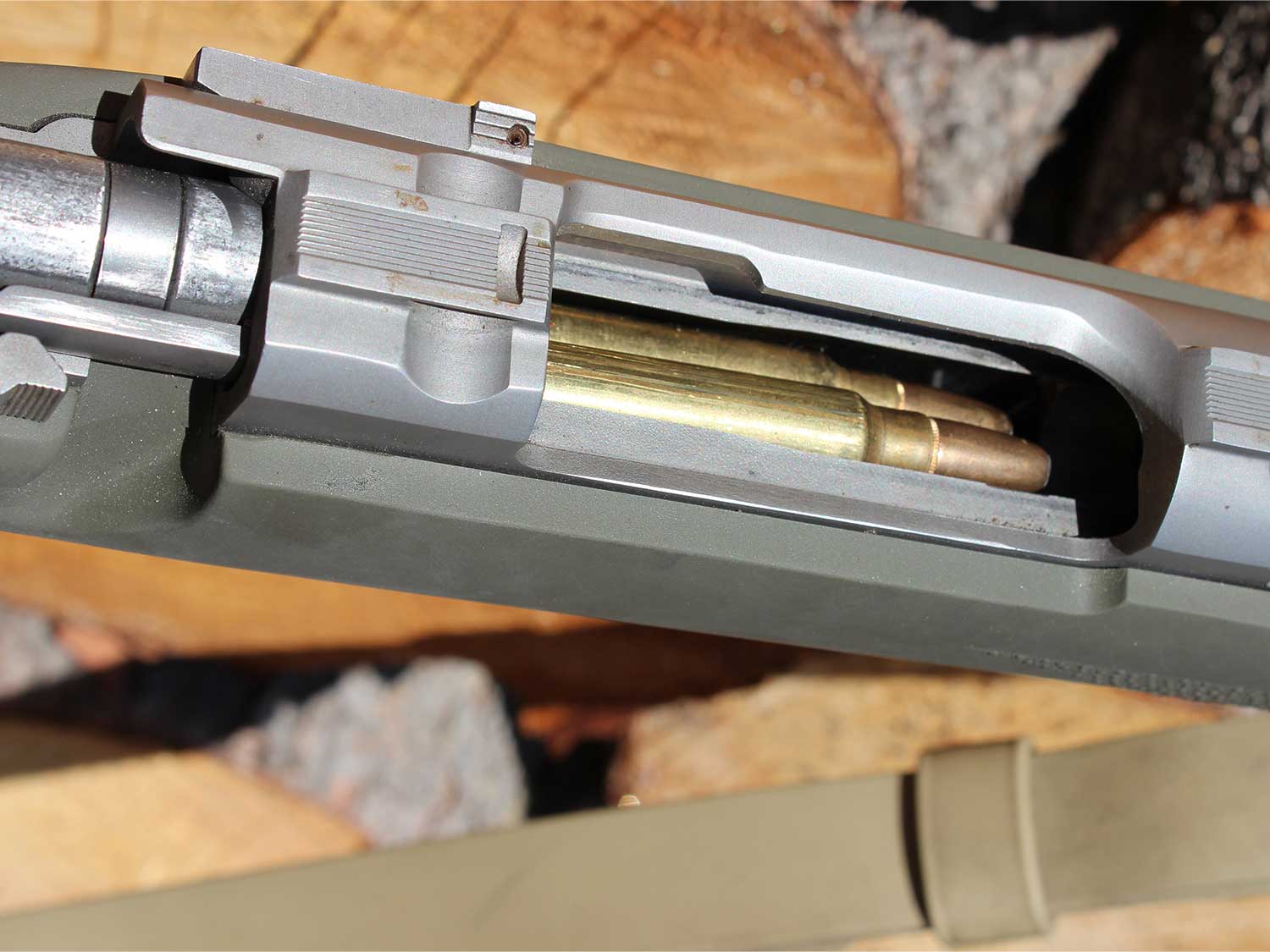 Look for the biggest caliber you can shoot well in a rifle with a controlled-feed action like the Winchester Model 70 Safari Express, or the Ruger Guide Gun. While big bore rifles are ideal, even a .308 will work.