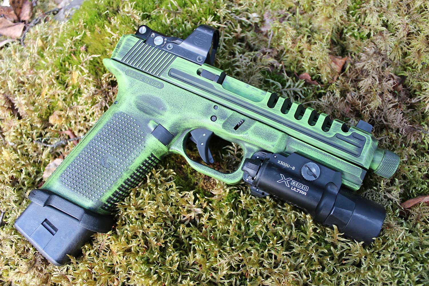 - Aggressive slide cut pattern for reduced weight and easy front-slide cocking