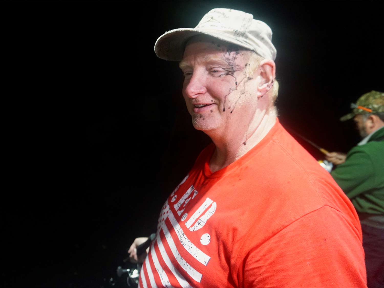 Left and right, the squid were piling up, and the deck was getting covered in black ink. Mike walked up and down the boat, untangling lines, re-tying lures, and helping anyone who needed it. Out of the corner of my eye, I saw Captain Greg Dubrule and C.J., another deckhand, recording a Facebook Live video.