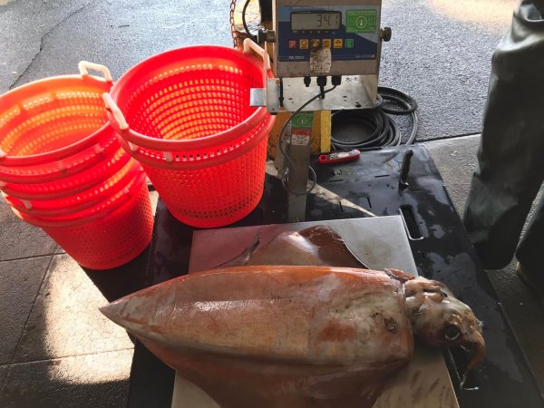 Each passenger is allowed one five-gallon bucket, and some of them catch squid for food while others use the trip to stock up their bait freezers. This is the first year that Black Hawk Sportfishing is targeting squid, and it has been a runaway success.