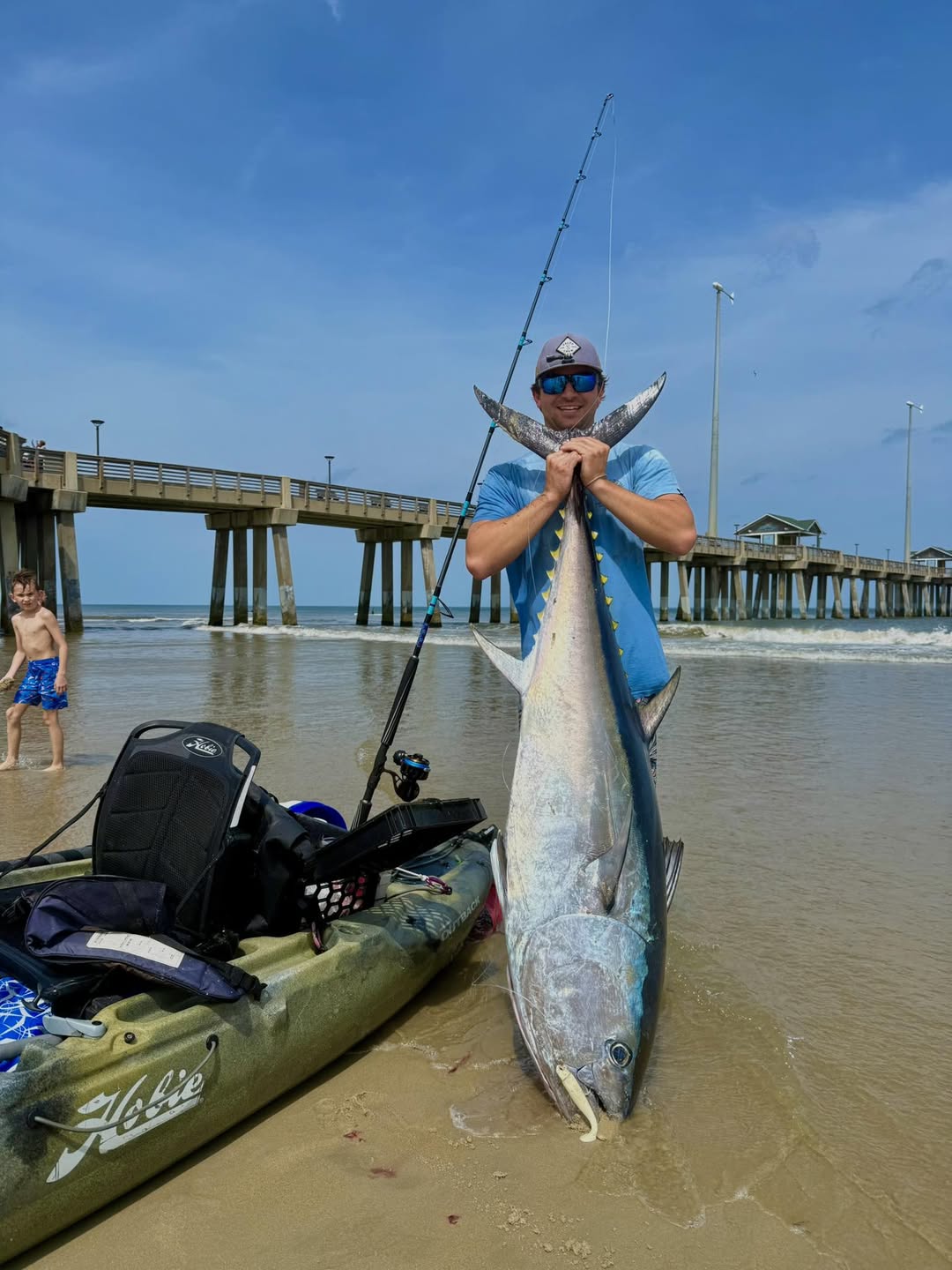 On April 4, Stefan Turko of Kitty Hawk landed an impressive 140-pound bluefin from his kayak while fishing off the end of Jennette’s.