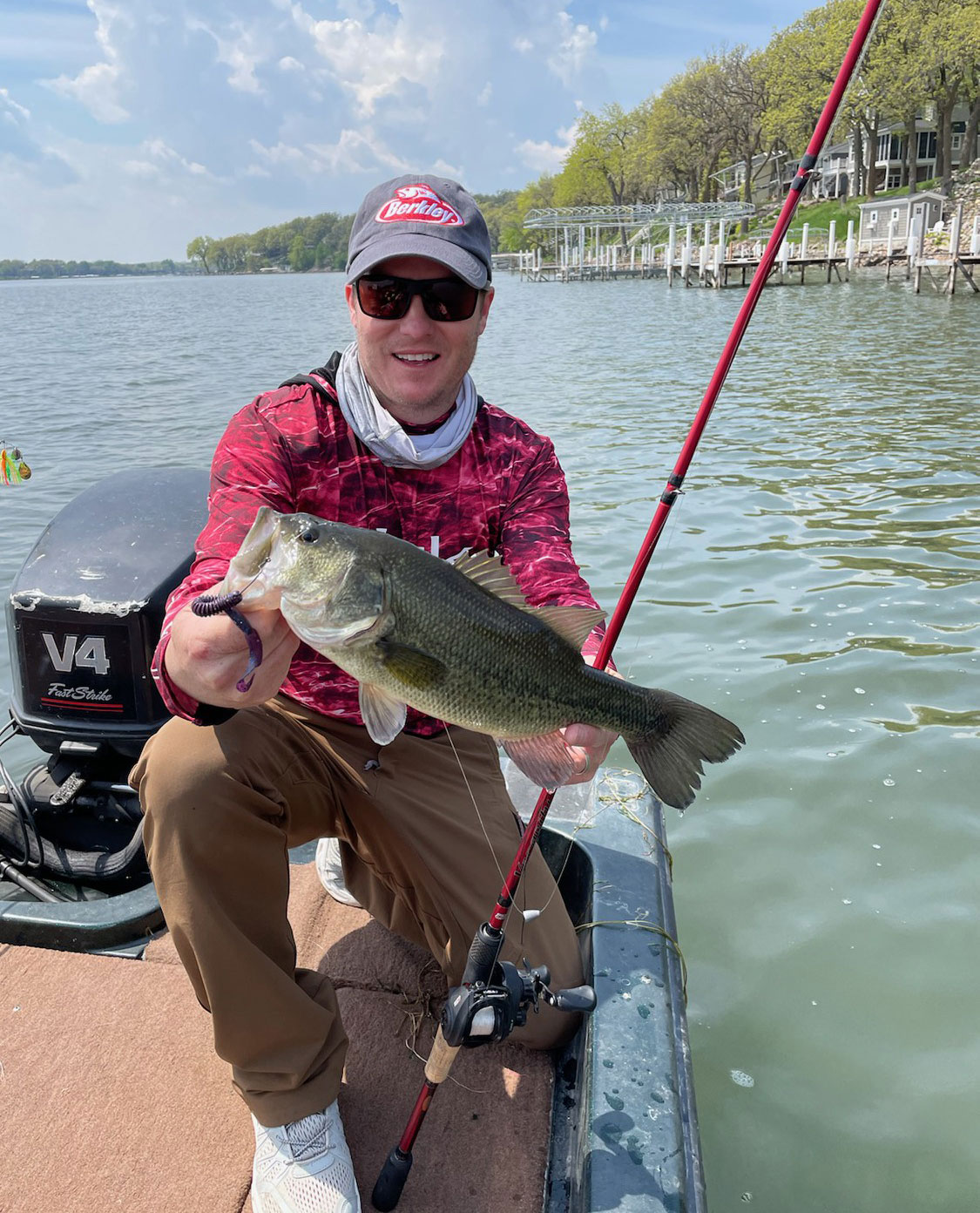 In 2018 the company launched MaxScent, a product that produces a scent cloud in the water to attract fish. I probably would not have believed it had I not seen it work when a MaxScent worm infused with scented dye was placed in a tank side-by-side a competitor’s worm. The scent from the MaxScent worm instantly began making a red-colored cloud of scent all around the lure, thereby increasing its scent signature and its odds that a bass would find it. In another experiment, I watched as a bass bit a plain bait but instantly spat it out. When the same bass bit the MaxScent bait, however, it devoured it.
