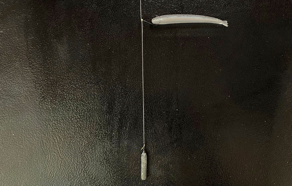 In essence, a drop shot is anchored by a small lead or tungsten weight at the end of the line. About 8 to 12 inches above the weight is a small hook and a soft plastic worm or minnow. The rig can be fished vertically, or cast out and slowly worked back to the boat similar to a Texas rig.