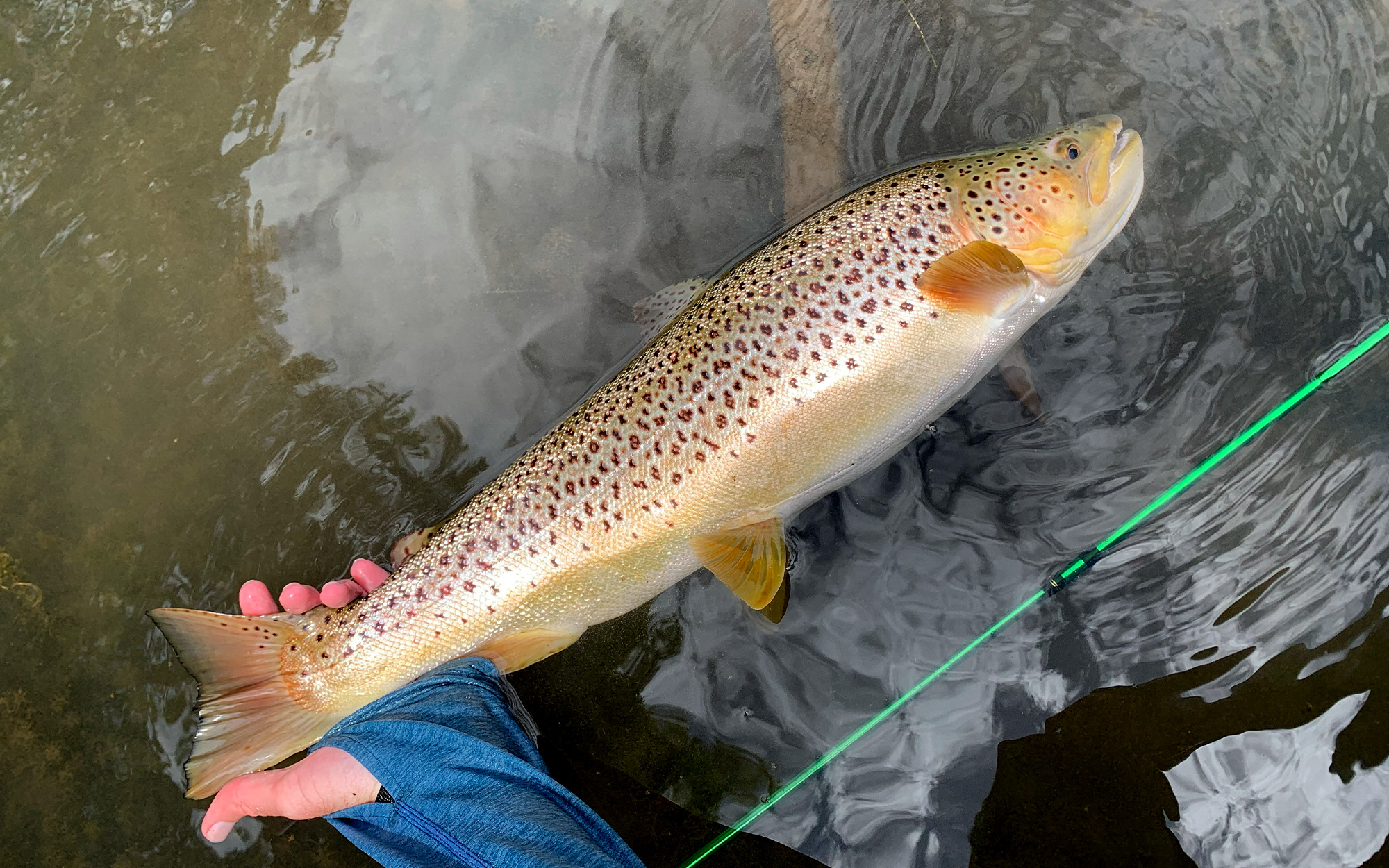 That one fish was a 21-inch brown, the biggest Zylstra had ever caught. But he’d beat his own record twice that afternoon — first with a 23-inch brown, and then with a 26-incher — as he brought countless fish to hand, all on the same cicada pattern. At one point, he forgot to reel in as he bent over to pick up some trash in the river, and a trout hammered his fly as it hung downstream in the current.