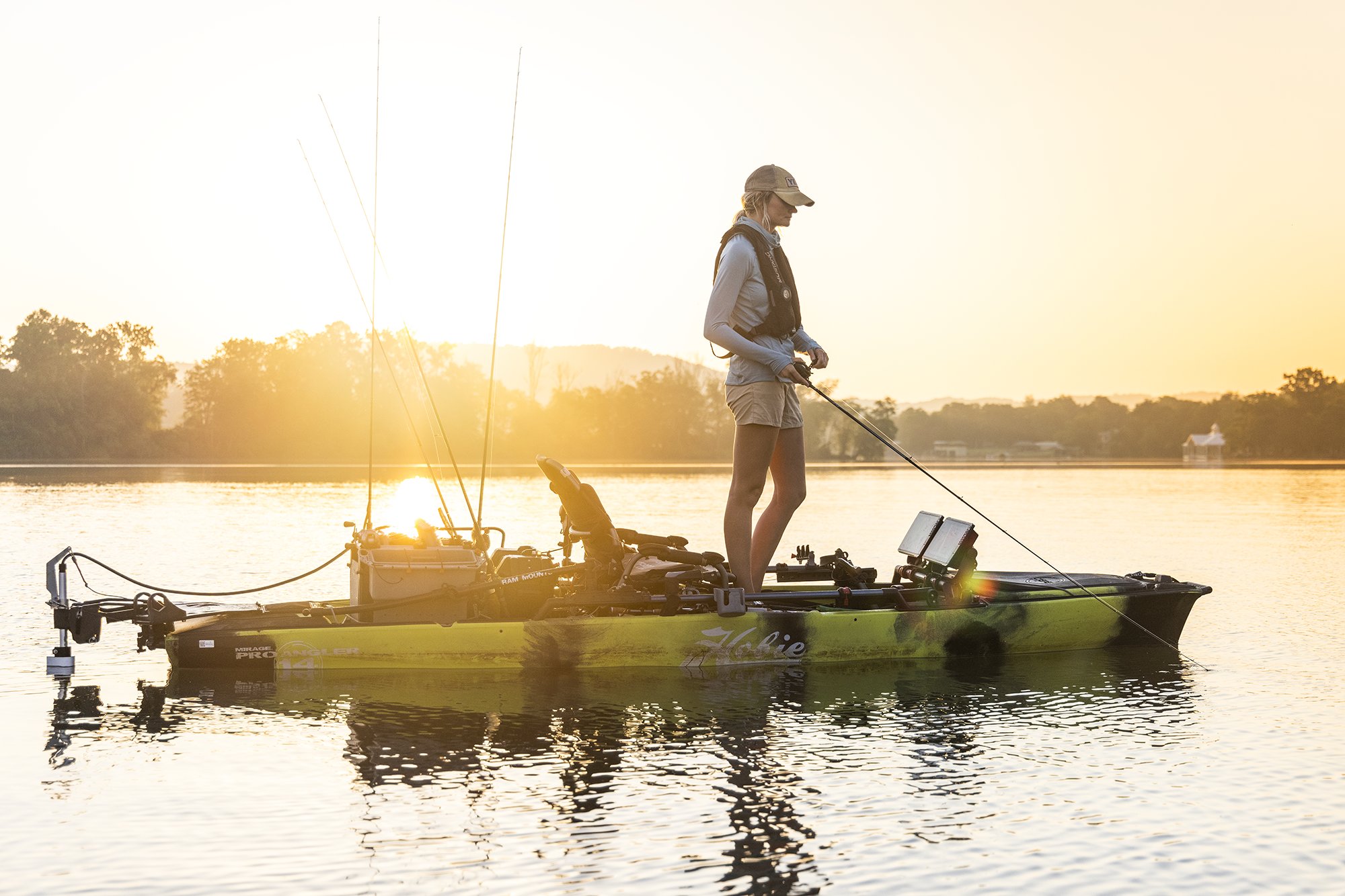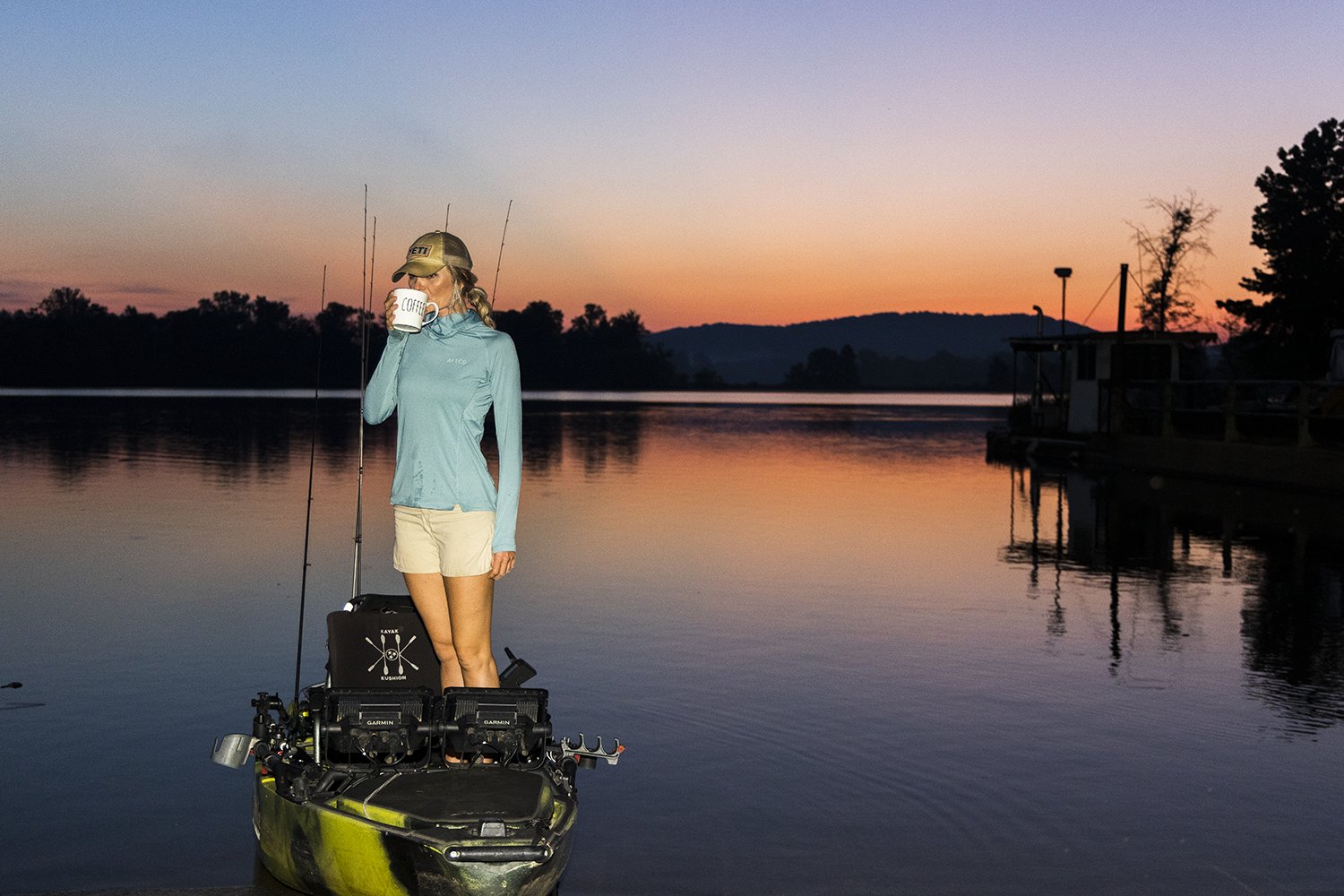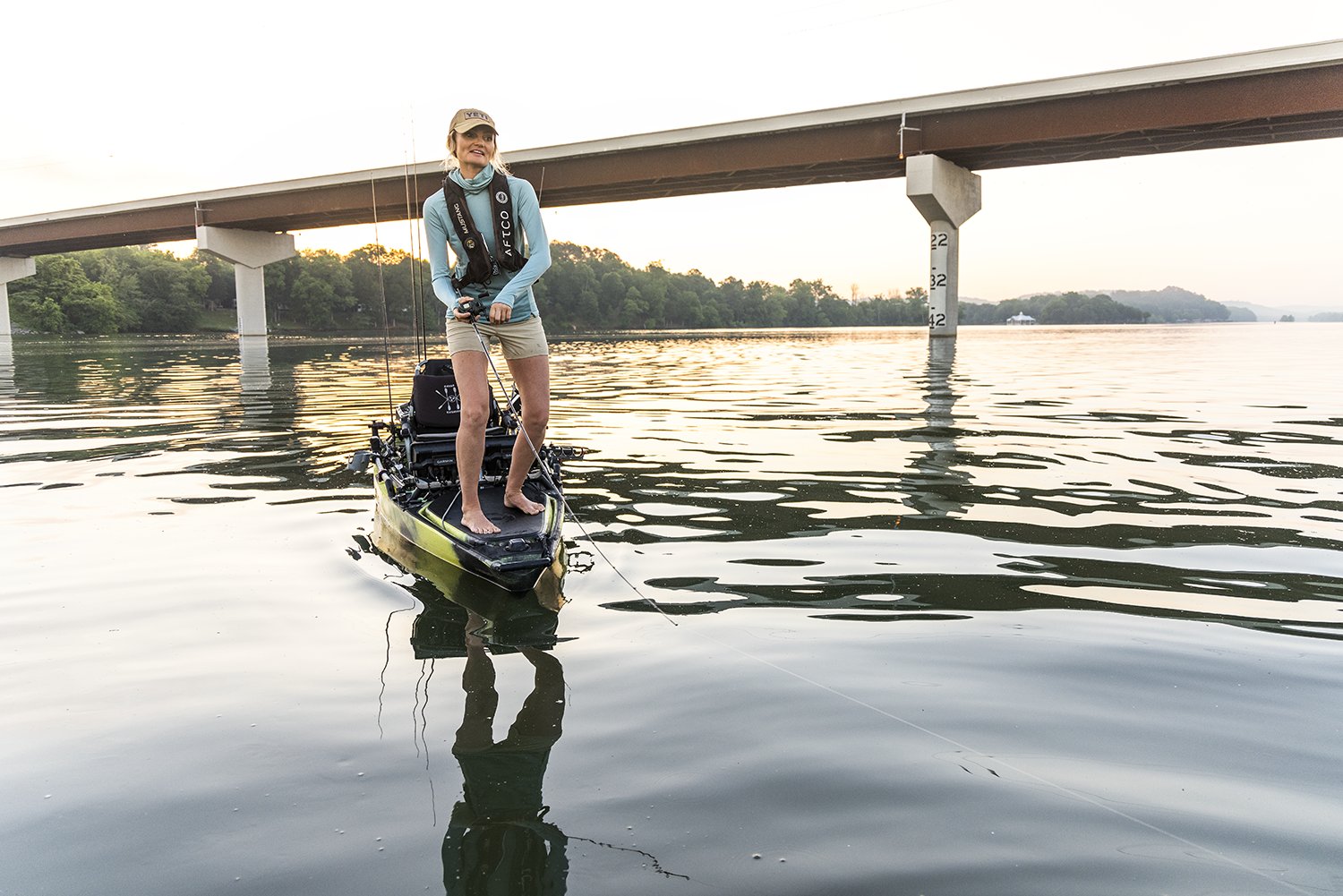 The field was stout, full of pro anglers who “kicked my butt,” says Fischer. She hadn’t caught a single fish. On the drive home, she considered giving up and keeping her job as a Pilates instructor. The pros on Lake Fork took kayak fishing to a new level, and Fischer wasn’t sure she could keep up.