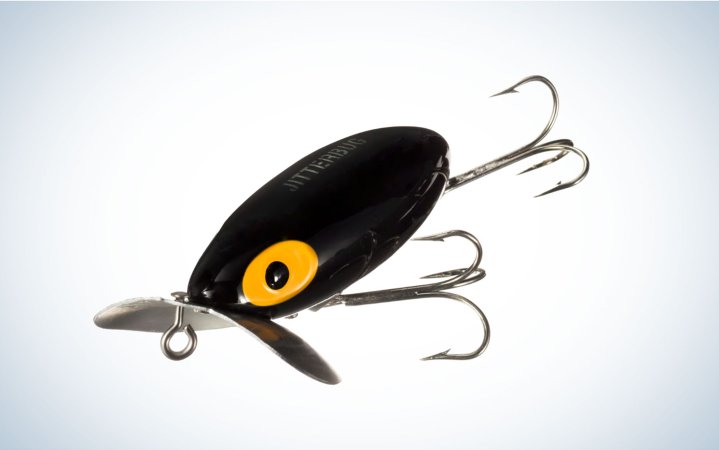 The Jitterbug ultimately spawned an entire lure category known as crawling topwaters. Today, these come in a variety of shapes and sizes, mimicking everything from bats to rats, and these updated iterations remain trendy and popular. But the original is largely viewed as “grandpa’s lure” today, which is a shame. The Jitterbug’s heart-shaped metal lip was revolutionary when it first hit the scene. During a steady retrieve, the lure would waddle, causing each side of the lip to slap the water at a fast rate. The result was a unique gurgling sound, and the creation of a bubbly V-wake bass can follow to the lure. Though a Jitterbug can conjure explosions at any time of day, it’s particularly lethal in low light or after dark.