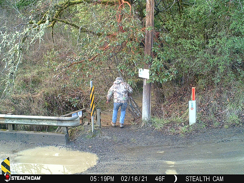 “We’d get a call from a volunteer saying there were six or seven fish in a trap,” says district biologist Mike Gray. “Then when we got there, the trap was empty. We found evidence that the trap had been damaged, so we knew someone was getting in there.”