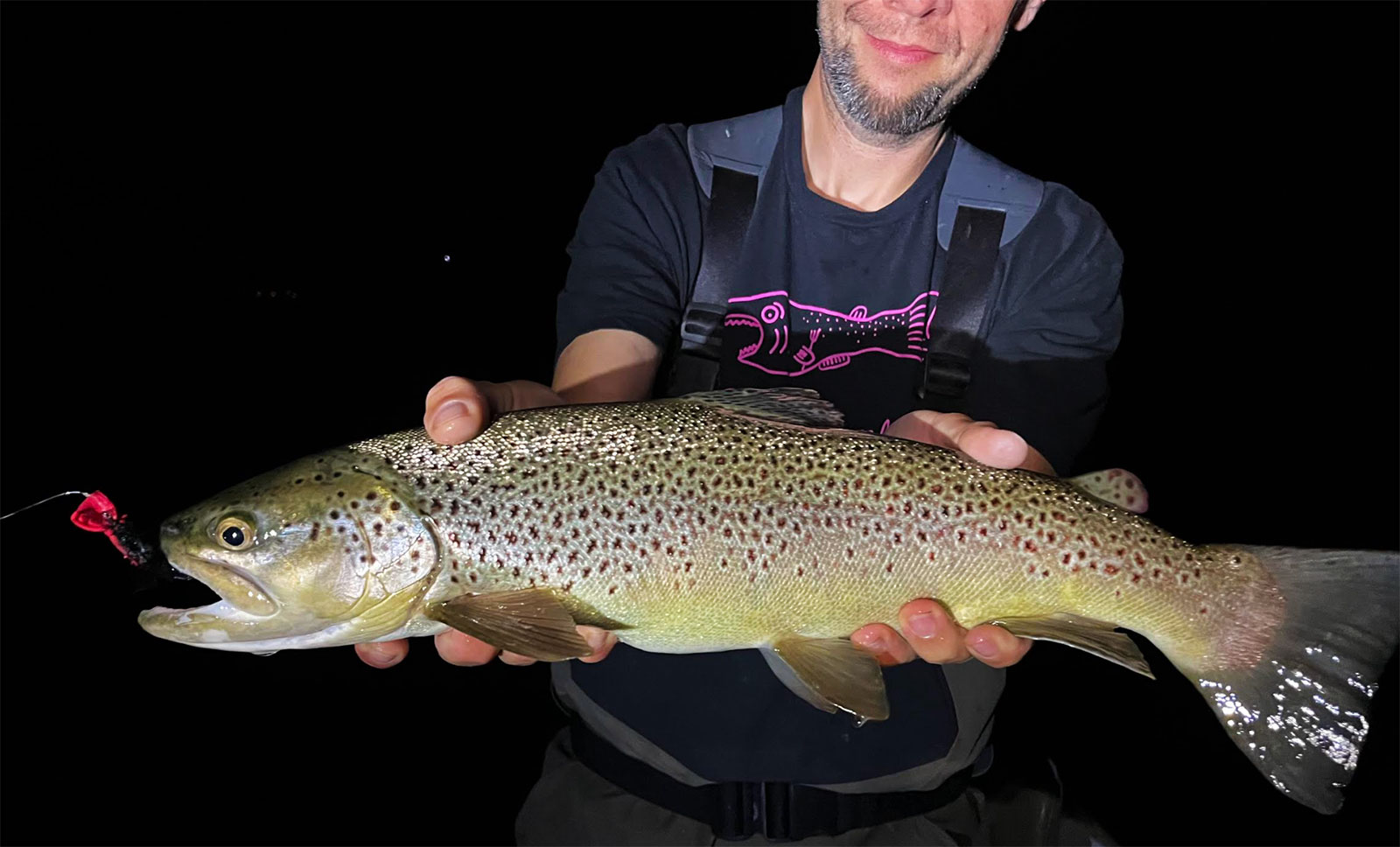 Catfish, striped bass, and walleyes are just a few fish widely known to hunt nocturnally. It’s not uncommon for anglers to wait until the sun sets to get after them, especially considering the bigger specimens often fall after dusk. These, of course, are not the only sportfish that hunt while we’re sleeping. Largemouth bass, muskies, and saltwater species like snook and tarpon prowl the darkness, too. What fewer anglers realize, however, is that trout — browns especially — do a lot of their foraging in the dark, particularly in the summer. But fishing your favorite trout stream or river after the lights go out is a bit more challenging than night fishing on still water.